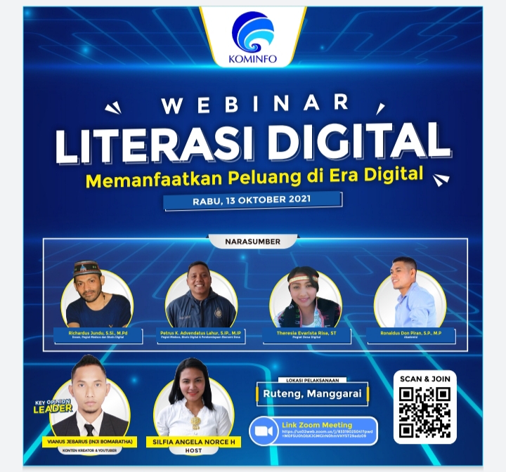 Turut hadir sebagai nara sumber, Dosen Pegiat Medsos dan Bisnis Digital Richardus Jundu, Pegiat Desa Digital Theresia Evarista Risa, Content Creator dan Youtuber Vianus Jebarus (Inji Bomaratha), dan Akademisi Ronaldus Don Piran. Webinar yang dihadiri ratusan peserta dari kalangan mahasiswa dan masyarakat umum itu dipandu oleh host Silfia Angela Norche H. (*)