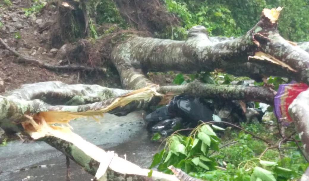 Ruteng, KN – Hujan lebat di wilayah Kabupaten Manggarai, Selasa 11 Januari 2021 menyebabkan satu pengendara motor tewas tertimpa pohon yang tumbang.