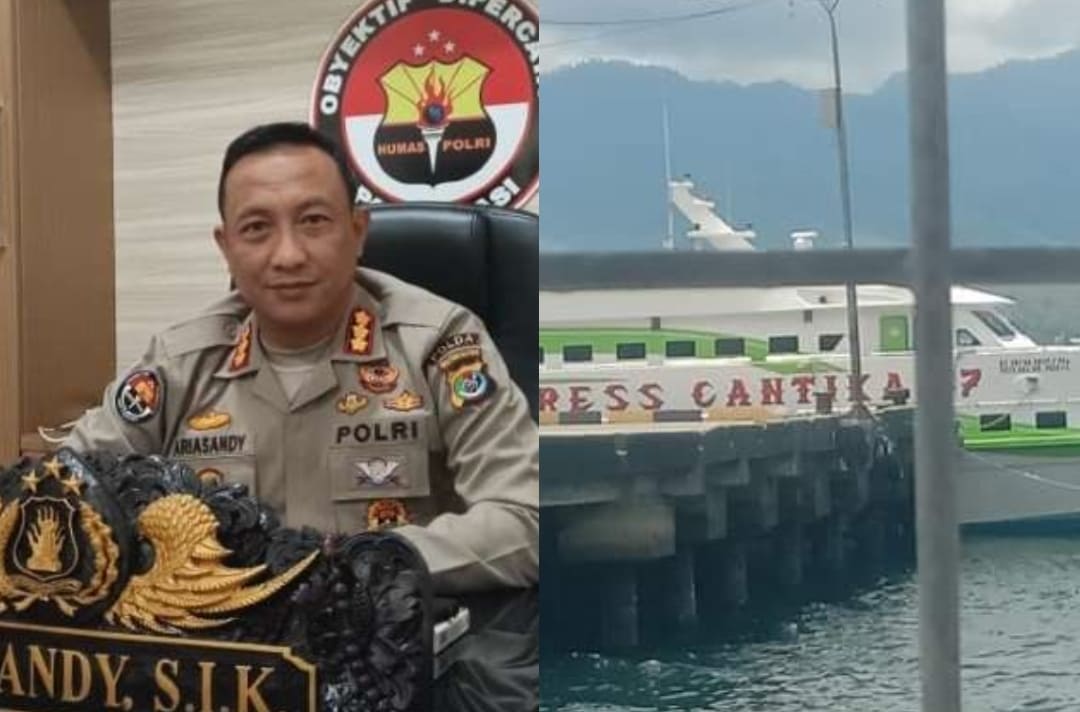 Kolase foto Kabid Humas Polda NTT Kombes Pol Ariasandy dan Kapal Express Cantika 77. (Foto: Istimewa)