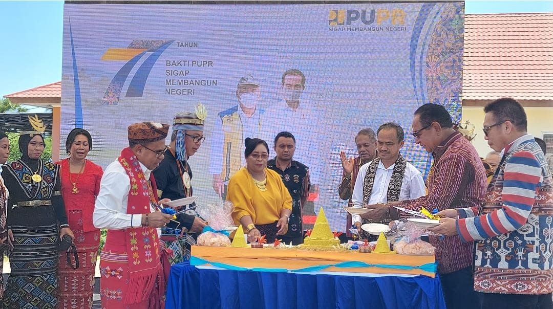 Pemotongan Tumpeng Hari Bhakti PUPR ke-77. (Foto: Ama Beding)