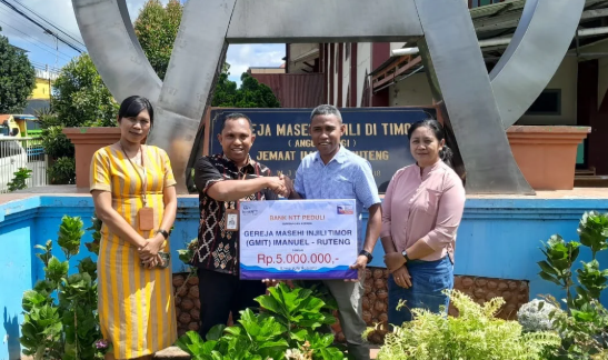 Bantuan senilai Rp 5 juta ini diserahkan langsung oleh Kepala Bank NTT Cabang Ruteng, Romi Radjalangu, kepada Ketua Majelis Jemaat GMIT Imanuel Ruteng, Pdt. Meksi Dethan, didampingi oleh Pdt. Meldiany UD Lay di halaman gereja GMIT Imanuel Ruteng, Kota Ruteng, Rabu (30/7/2025).
