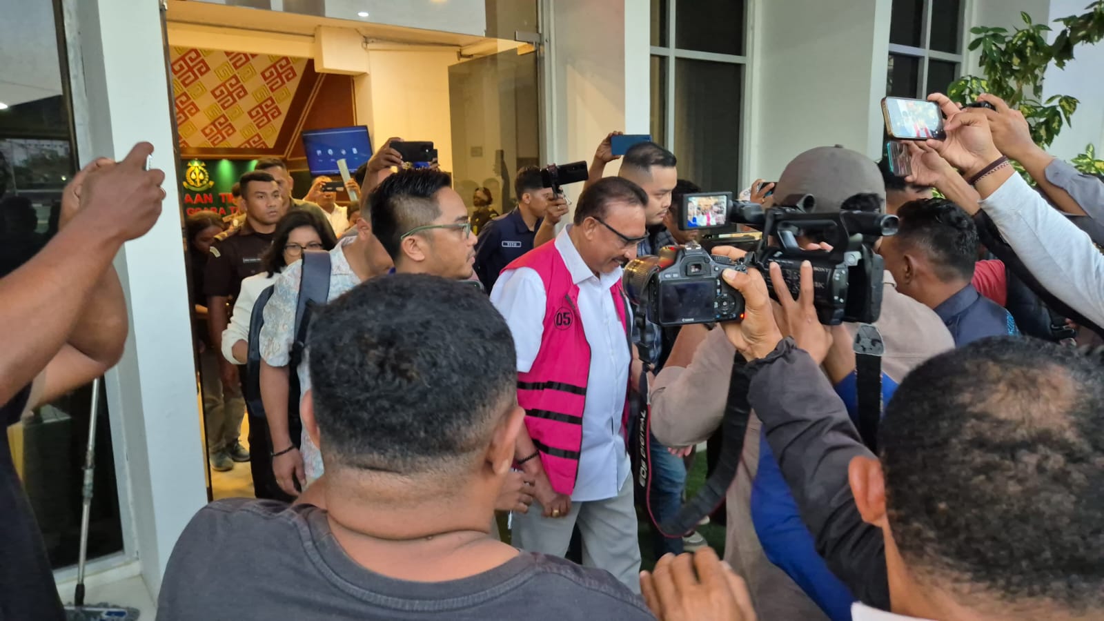 Jonas Salean resmi pakai rompi pink dan berjalan menuju mobil tahanan. (Foto: Dok. Kejati NTT)