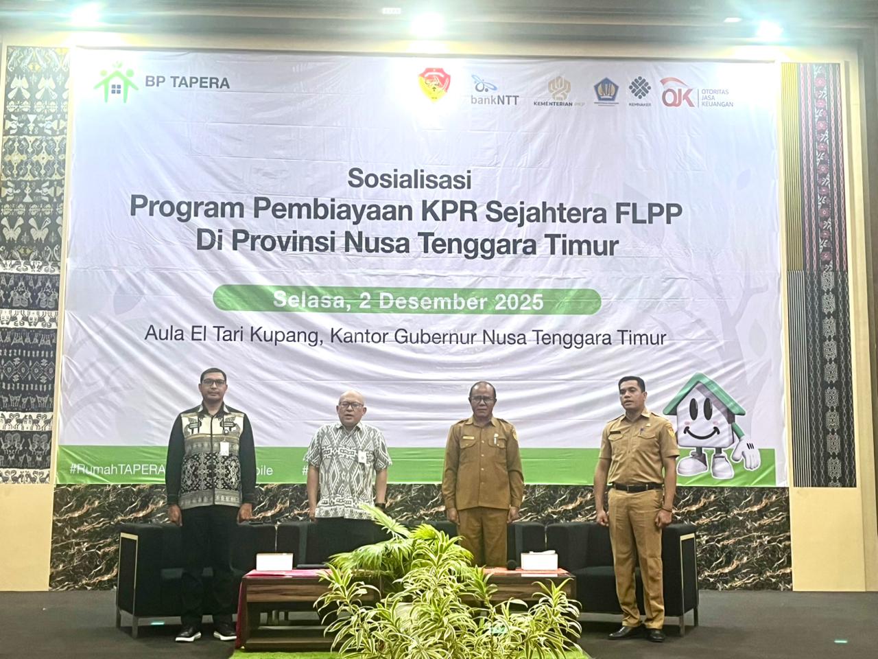 Kupang, KN – Bank NTT bersama BP Tapera dan Pemerintah Provinsi NTT menggelar sosialisasi Program Pembiayaan KPR Sejahtera Fasilitas Likuiditas Pembiayaan Perumahan (FLPP) bagi Aparatur Sipil Negara (ASN), bertempat di Aula El Tari Kupang, Selasa 2 Desember 2025. Kegiatan ini bertujuan memberikan pemahaman mengenai manfaat, hak, serta kewajiban dalam program perumahan nasional yang menjadi bagian dari agenda Asta Cita Presiden Prabowo.