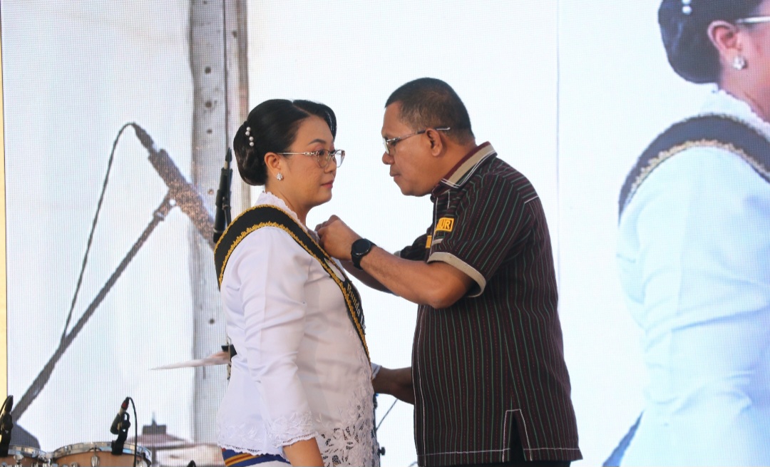 Pengukuhan Mindriyati Astiningsih Laka Lena menjadi Bunda Literasi NTT oleh Gubernur NTT Melki Laka Lena. (Foto: Dok. Biro Adpim)