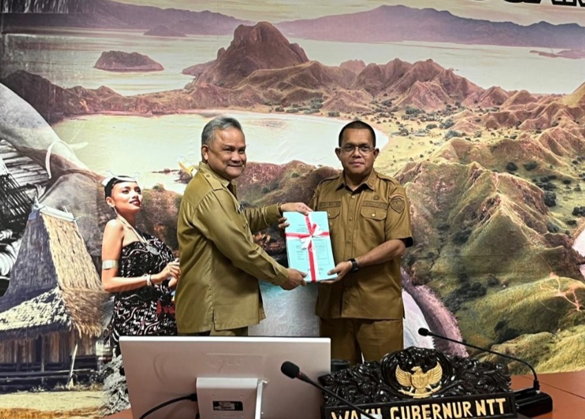 Gubernur Melki didampingi Pelaksana Harian (Plh) Sekretaris Daerah Provinsi NTT, Flouri Rita Wuisan. Penyerahan dilakukan secara simbolis kepada tujuh OPD dan diterima langsung oleh masing-masing pimpinan perangkat daerah.
