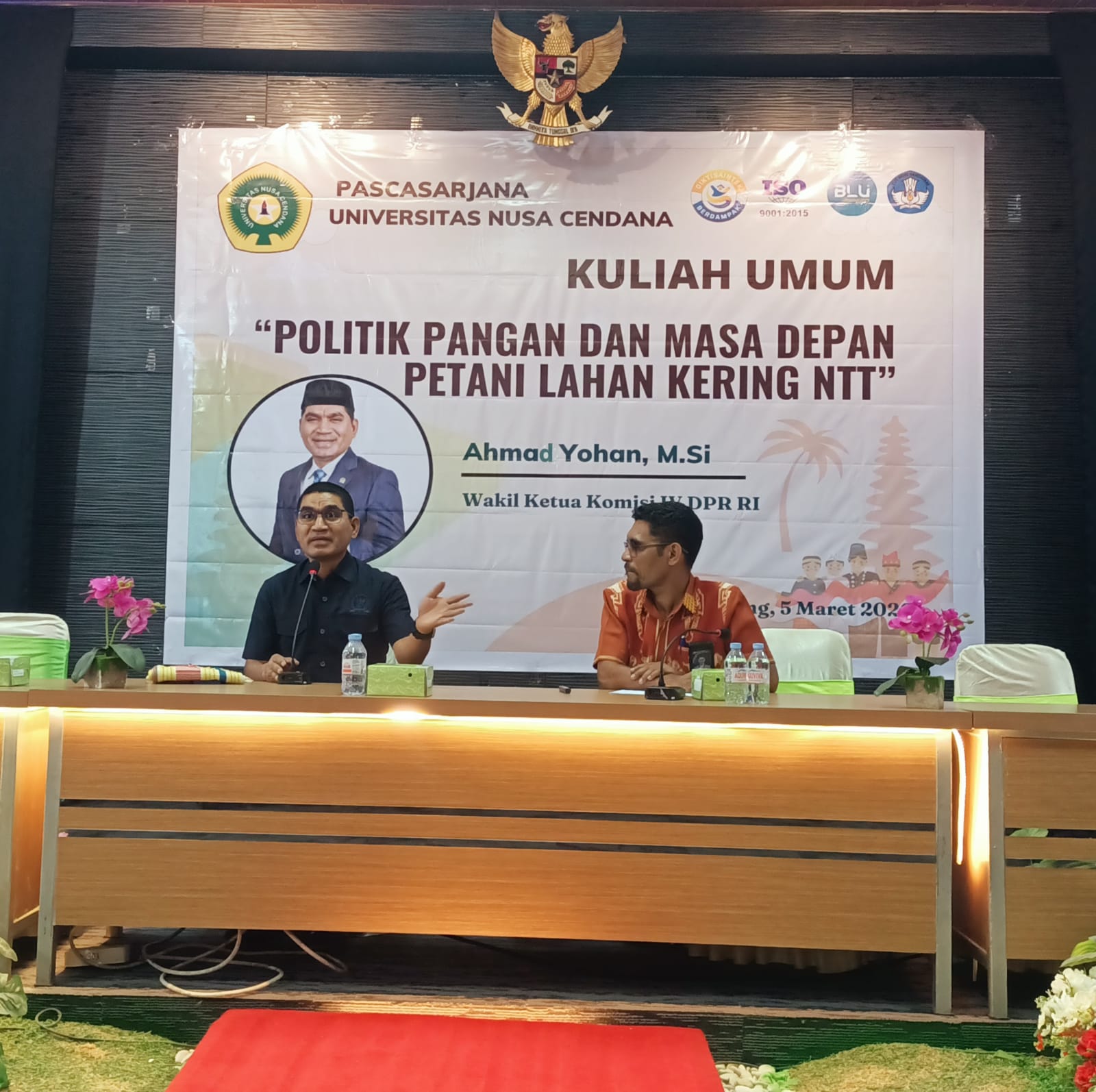 Hal itu disampaikannya dalam kuliah umum bertajuk “Politik Pangan dan Masa Depan Petani Lahan Kering NTT” yang dihadiri akademisi, mahasiswa, serta pemangku kepentingan sektor pertanian yang berlangsung di aula Pasca Sarjana Undana Kupang di pandu oleh Dr. Hamza Wulakada Direktur Pascasarjana Universitas Nusa Cendana Kupang Kamis, 5 Maret 2026